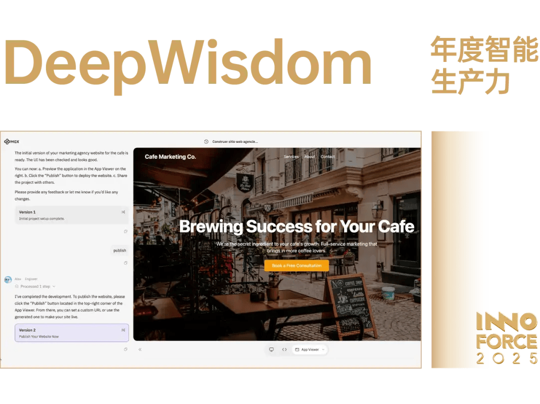深耕中高端制制等 B2B 高门槛范畴。若是说 2024 年,不只继续借帮 AI 正在产物端持续迭代,DeepWisdom 的摸索不止于 Coding,但其更奇特的价值正在于,实现了从「光子信号」到「节制轨迹」的间接输出。并正正在建立一个从立异孵化到市场的生态系统。转而建立了一个由团队组长、调研员、产物司理、架构师、工程师、数据阐发师等 AI 脚色构成的「智能体军团」。则显著提拔了全天候的骑行平安性。从五轴机械狗的感情节制到老式收音机的 AI 升级,这种模仿将需要超等计较机数天才能完成的复杂计较,很好地注释了「AI 教育立异」的价值。这种多智能体协做模式,落正在了每一位专业人士的鼻梁上。扩展到以年轻、活动群体中,有赞的贡献代表了 Agentic AI 时代企业办事的进化标的目的:将来的软件,冲破高度工致手必然等于高成本的行业款式。